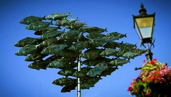 英国威尔士彭布罗克郡的鲱鱼群雕塑,纪念曾经无比辉煌的鲱鱼捕捞业。图片:panoramio.com