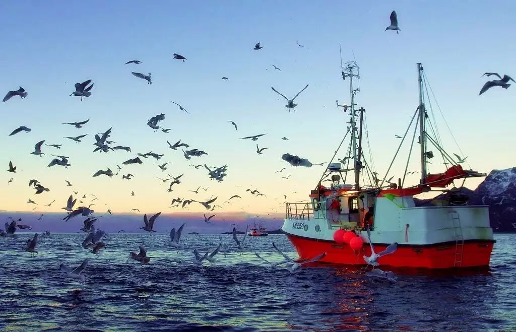 鲱鱼捕捞船和等着捡漏的海鸟。图片:jp.123rf.com