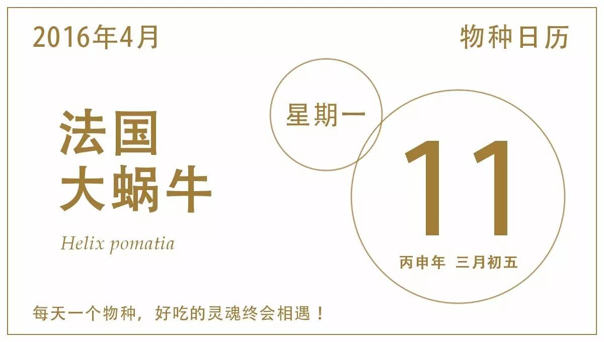 法餐里的蜗牛,胖嘟嘟的外形和我们常吃的田螺倒有几分相似,比较常见的一种便是今天物种日历的主角——法国大蜗牛(Helix pomatia),属于腹足纲 有肺目 大蜗牛科 蜗牛属,还有两个高大上的俗名:罗马蜗牛、勃艮第蜗牛(Escargot de Bourgogne)。