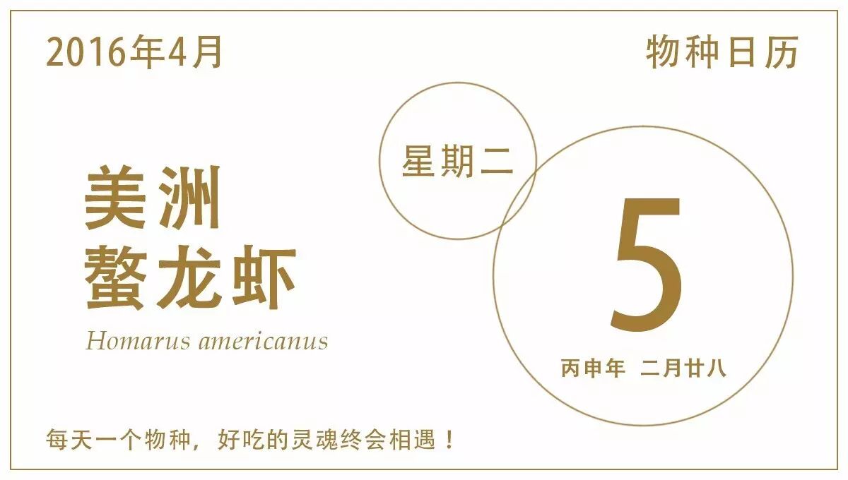美洲螯龙虾(Homarus americanus)又俗称波士顿龙虾、缅因龙虾,英文俗名American lobster。隶属于十足目海螯虾科螯龙虾属,虽然名字中带有龙虾二字,但真正意义上的“龙虾”特指龙虾属物种,比如之前日历中介绍过的锦绣龙虾,而美洲螯龙虾其实并不属于龙虾。