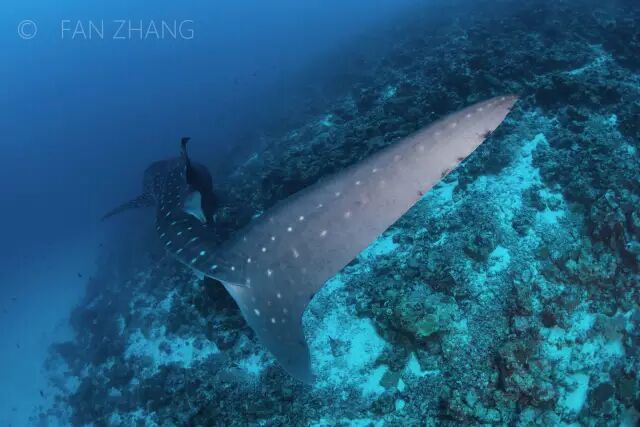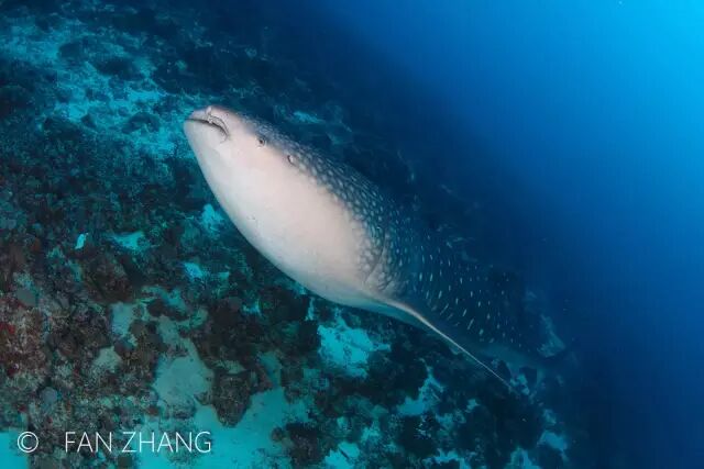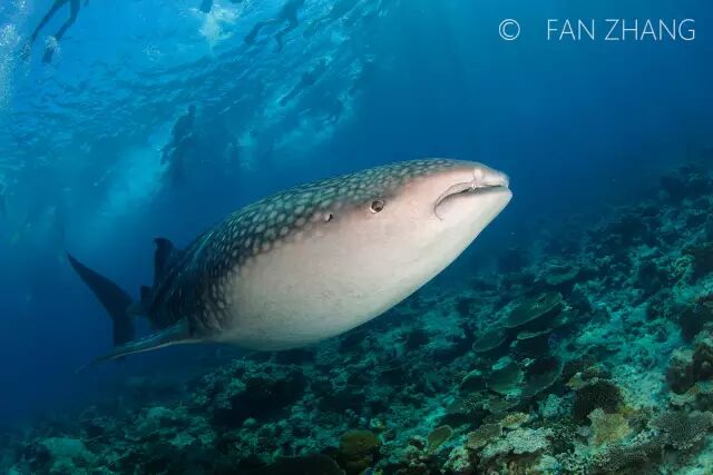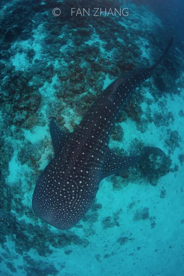 听一位在马代潜水多年的资深业者说,多年前,在阿里环礁寻找鲸鲨根本不是难事。晴好的天气,总会看到它们浮出水面的的身影,因为独特的星星花纹,站在多尼船顶老远就能看到。而如今寻找鲸鲨已经慢慢变得越来越难,发现的个体也往往都是不成熟的幼体。