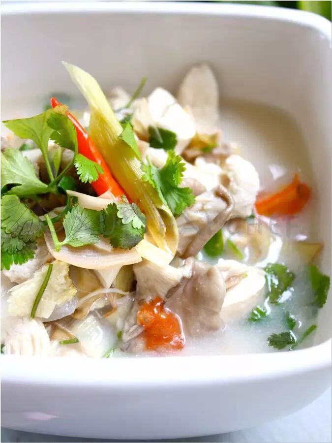 泰国的蘑菇椰子汤,这种加了奶油的汤不是很喜欢。图片:mauithaichef.blogspot.com