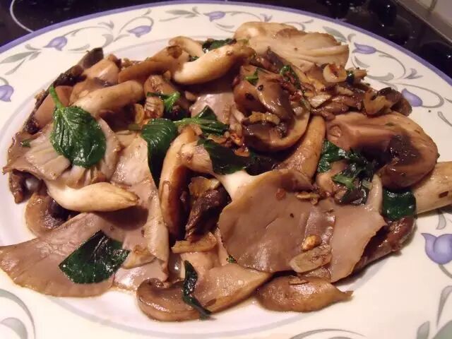 清炒的话,最多的就是平菇炒青菜了,不过青菜的味道我不喜欢,最好什么都不配,清炒平菇就可以。或者,按我口味的话,还可以加点酱油。