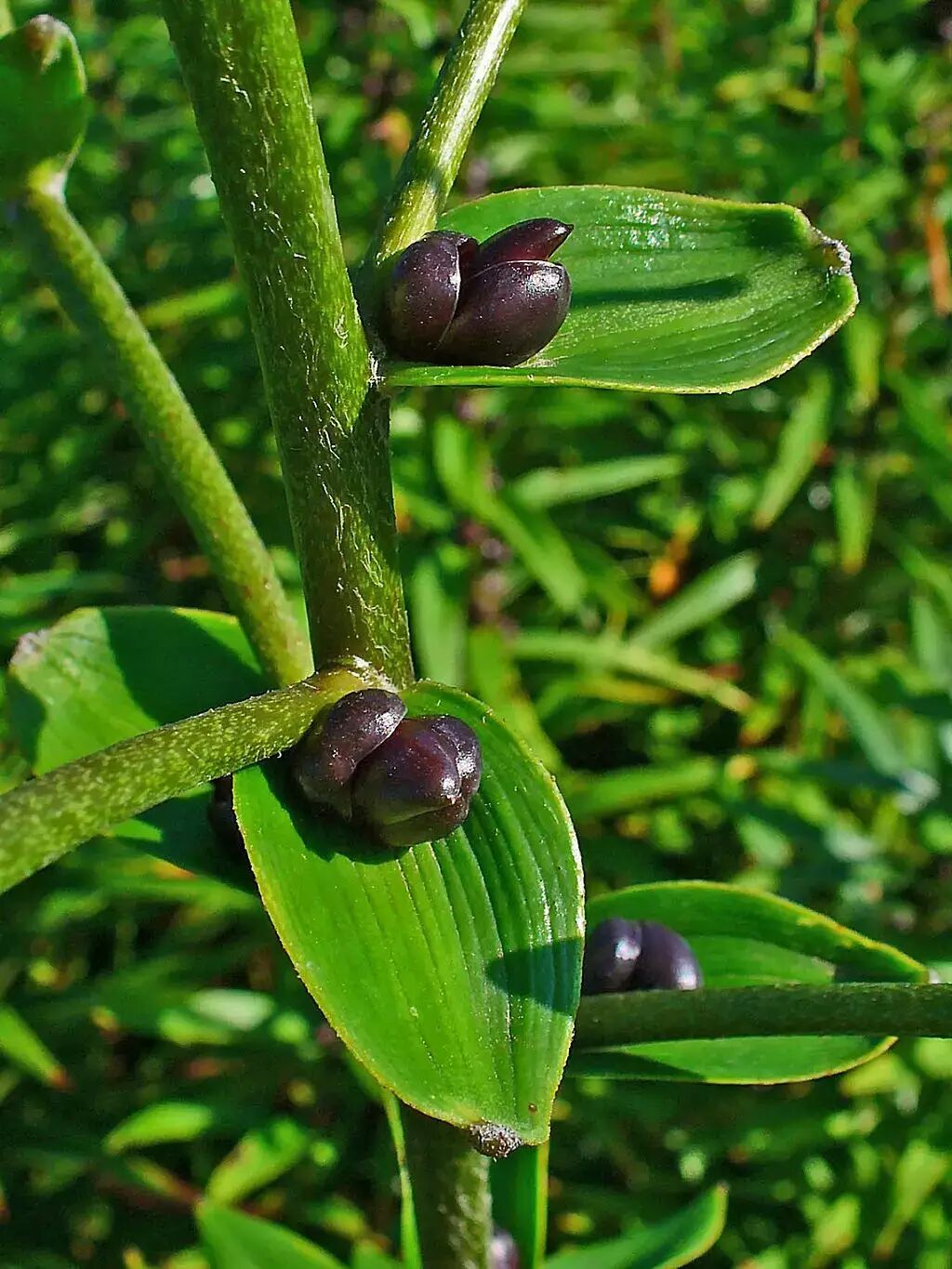 卷丹L. lancifolium叶腋的紫黑色珠芽。图片:Wiki Commons