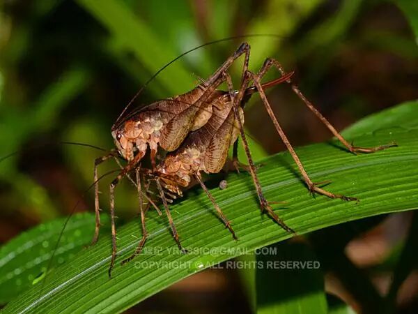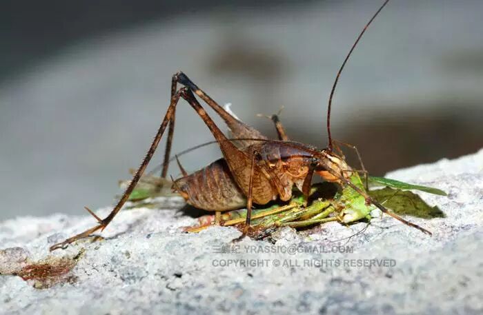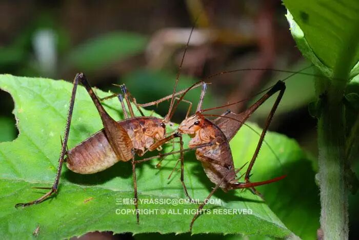 雌雄灶马在交配前的触角交流,摄影:三蝶纪