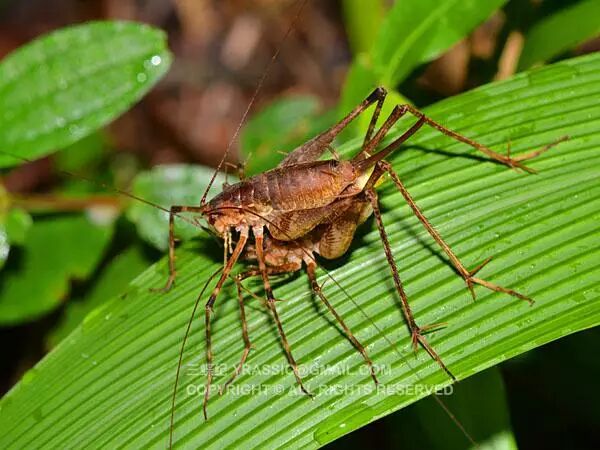 一个夏天的晚上,有一个可恶的雌性人类夜拍时看到了一对正在OOXX的灶马,有长长产卵管的雌性在上面,雄性在下面。正当该可恶的雌性人类想为这俩拍个高清无码大特写时,雌性灶马被惊动了,秒速弹跳进了草丛。可怜的雄性灶马还不知情,继续撅得高高的将珍贵精包释放出来,企图给雌性受精并且赠送雌性这份珍贵的礼物。终于它发现媳妇不见了,惊慌失措,左右寻找。最后只好将精包留在了草上等待有缘的雌性灶马来帮他留下后代。后面俩灶马不知道去哪了,该可恶的雌性人类也受到惩罚,被罚写了这篇稿汁,故事完。