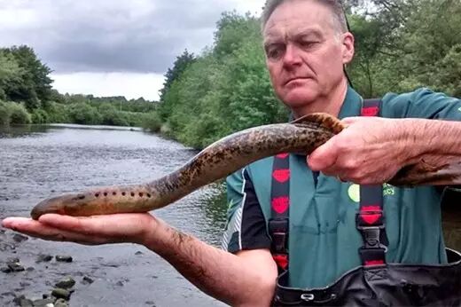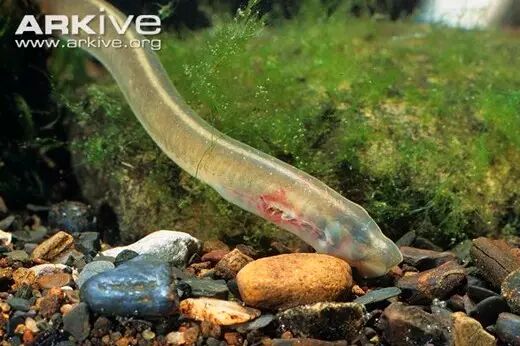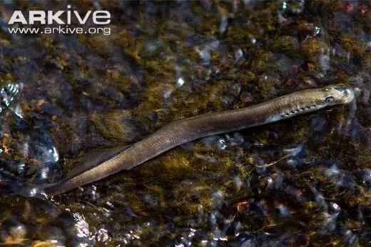 溪流中的欧洲七鳃鳗(L. fluviatilis)。图片:arkive.org