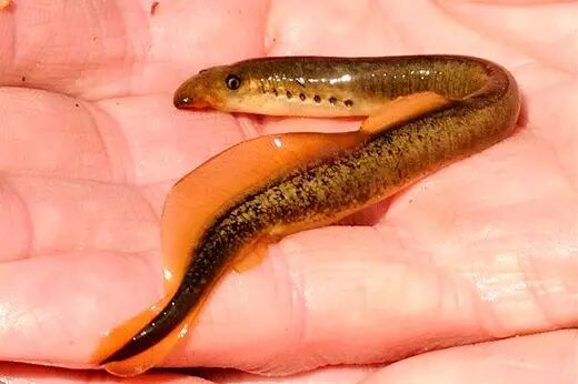幼体期的七鳃鳗,通透的小清新。图片:arkive.org