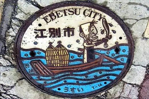 北海道江别市的井盖上也常能见到渔夫捕获七鳃鳗萌萌的图案,足见当地人对七鳃鳗的喜爱。