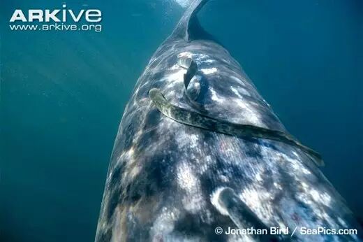 寄生在姥鲨体表的海七鳃鳗。图片:arkive.org