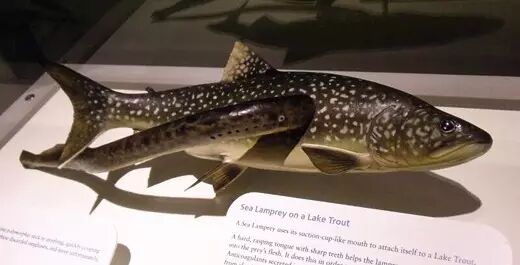寄生在红点鲑身上的七鳃鳗。图片:nationalgeographic