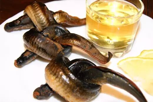 天啦撸,一向不擅烹饪的战斗民族居然也没有放过美味的七鳃鳗。当然做法还是有些许粗犷,整段七鳃鳗加入橄榄油、香料一起炖煮,搭配面包一起食用或是做成脆皮烟熏七鳃鳗的下酒小吃。