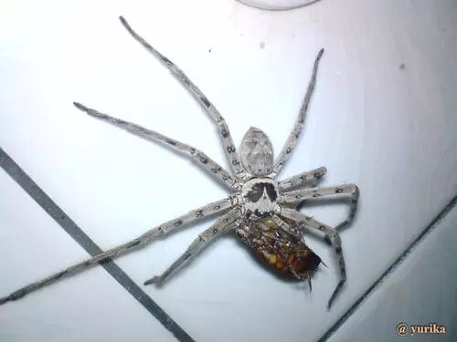 白额高脚蛛Heteropoda venatoria (Linnaeus,1767 )又叫白额巨蟹蛛、狩猎巨蟹蛛,属于高脚蛛科(巨蟹蛛科)。是广布于全世界热带、亚热带的一种蜘蛛。在中国,它在东南沿海和两广最多。