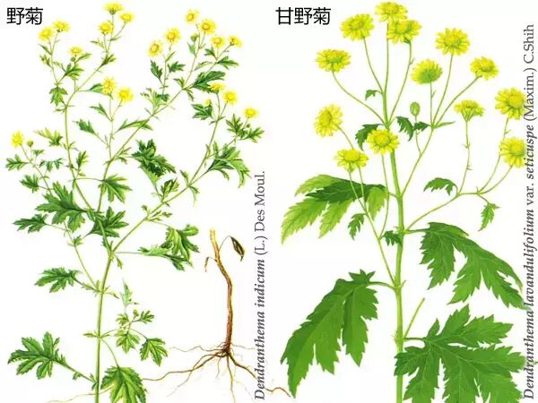 左图野菊是所有家菊的祖先,它就是英国人在舟山群岛看到的菊花,也是中国人最早看到的“黄花”。而右图甘野菊,则是一种在华北以及西北最常见到的野生菊花,它是那里秋天的主角。