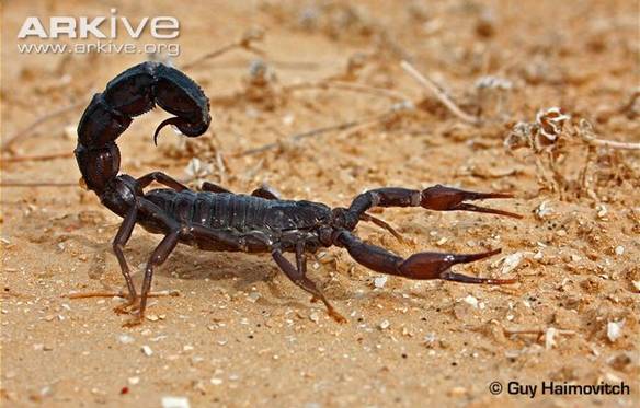 与之相对,阿拉伯肥尾蝎Androctonus crassicauda手无缚鸡之力,身怀杀人之毒。图片来自arkive.org