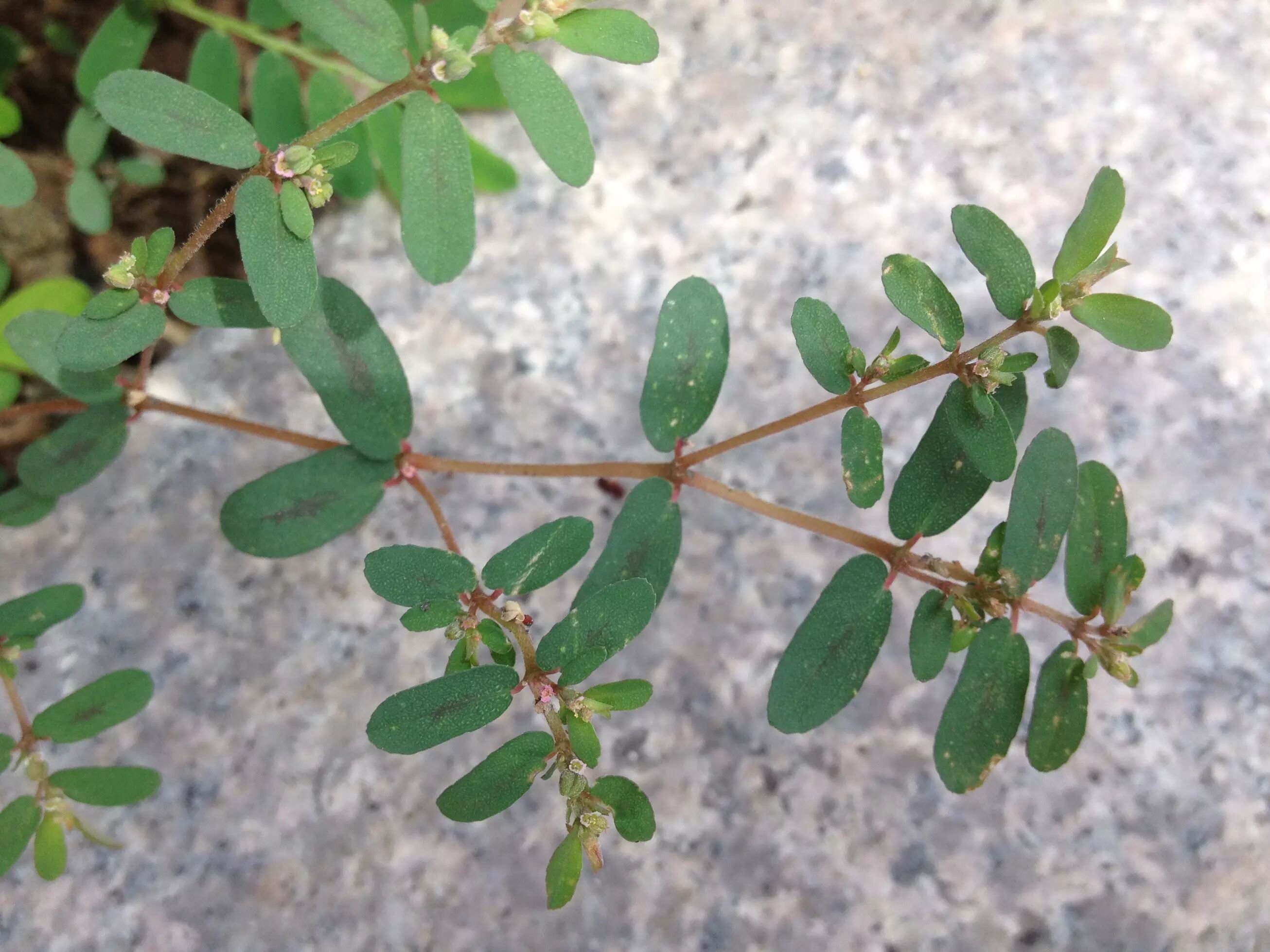 回到地锦草,这家伙所具有的花序结构前文就提到了是杯状聚伞花序,结构上和大多数大戟相似,顶多再提句它的花序是单生于叶腋的,不过其实就地锦草的尺寸来说它的花开成什么样都看不太清没什么差别了......