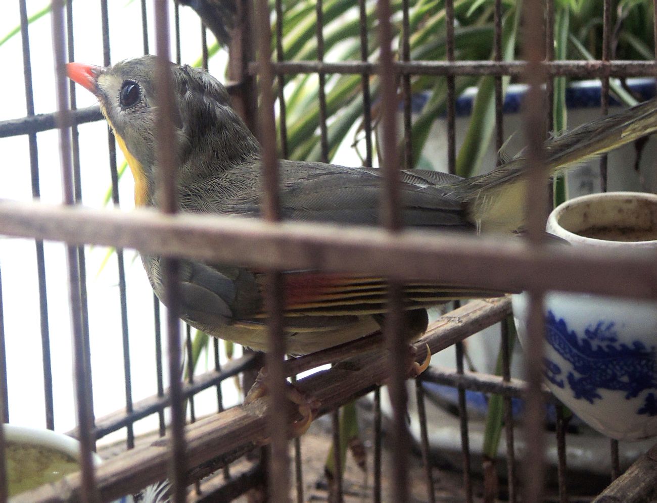 红嘴相思鸟具有比较典型的鹛类习性——性活泼而喧闹,鸣啭(song)响亮而婉转,一般不惧人,喜集小群活动,主食昆虫。红嘴相思鸟因其悦耳的鸣声和亮丽的羽色而成为中国最著名的笼养观赏鸟之一,是鹛类除了画眉以外最常见的笼养鸟——不得不提的是,这些常见的笼养鸟却全是从野外抓捕而来的野鸟,冠上人工繁殖的名头或是以毫不掩饰的商业目的拿来大量贩卖,而从野外抓鸟到贩卖到各家各户的过程中又是死伤大半幸存者少。更别提有些为了一己私欲所谓以野生生命之死来为自己洗刷冤孽以换得“功业”的各大放生团体以及个人都十分喜欢“放生”这些被抓捕来的红嘴相思鸟(点击“阅读原文”查看小组贴相关文章链接:昭觉寺的放生池),买来饿着也不喂食喂水,再放到秃山荒岭里根本就不是这些鸟平时活动的环境,甚至是在冬天在北方放飞——那却无论如何也不能够叫放生,且不说这种条件下被放飞的鸟很快就会死去,但凡有这样的市场需求,就会有更多的人为了钱而去抓捕更多的鸟。