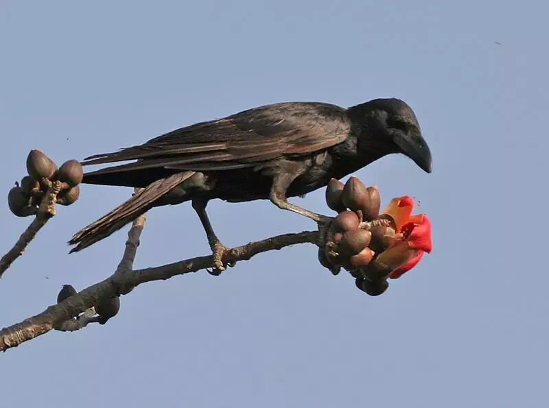 (疑似)访问木棉花朵的大嘴乌鸦,图来自wiki。