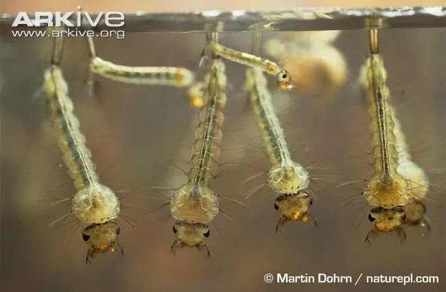 蚊子的幼虫是典型的滤食动物,靠特殊的口器过滤水里的微生物为生。幼虫通过尾部的呼吸管获取空气中的氧气。蚊子的蛹也会活跃地游泳,这点在昆虫里比较特殊。蛹和幼虫一样不能从水里获得氧气,而必须通过呼吸管从水面获取;呼吸管靠开口的疏水毛打破水面,因此只要在水面倒上一层油,它们就会全军覆没了。