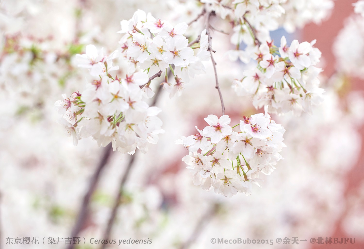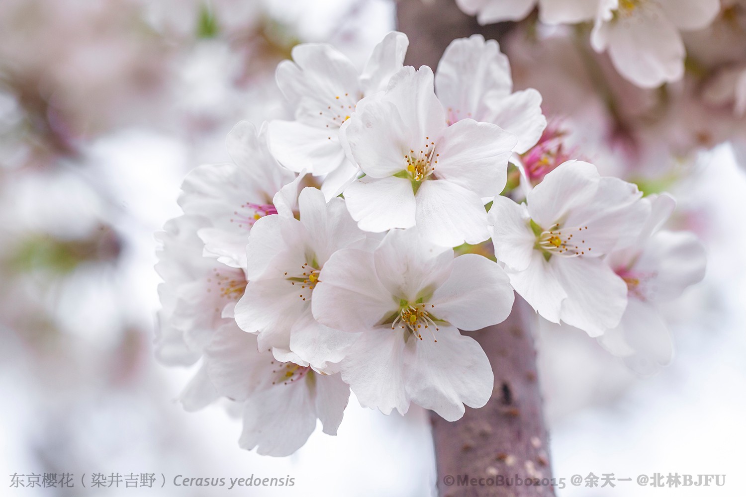 东京樱花就是人们熟知的染井吉野,染井吉野是它的日文名(Somei Yoshino)。这是日本乃至全世界栽培最广泛的樱花(这里说的“樱花”可以相当于部分樱属典型樱亚属物种),在国内每一个赏樱景点都能看到它的身影。作为普及度最高的一种樱花,东京樱花却不是原种而是杂交种,这在园林植物运用中似乎是很常见的一个现象;一个与其相近的例子就是羊蹄甲属的红花羊蹄甲Bauhinia × blakeana。和红花羊蹄甲一样,染井吉野由于是杂交种也不能产生可育种子(但植物并不是所有杂交种都不可育),一般通过枝条扦插繁殖,因此它的拉丁学名应该写作Cerasus × yedoensis。