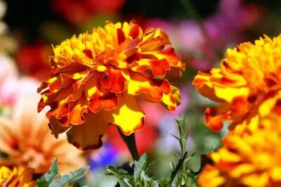金盏花。一年生植物,色彩鲜艳,非常容易生长。它们特殊的香气能阻止昆虫生长,通常在玫瑰附近种植,以防止蚜虫。如果猫吃了金盏花的叶或茎,将引起口腔轻度红肿、流口水、肚子痛和腹泻。