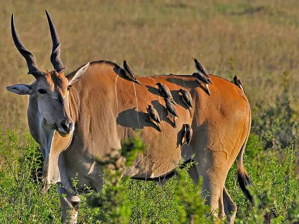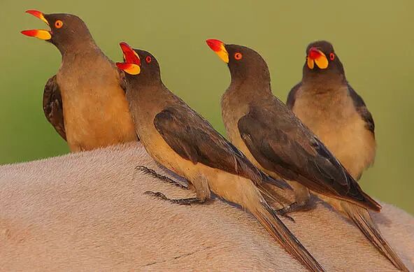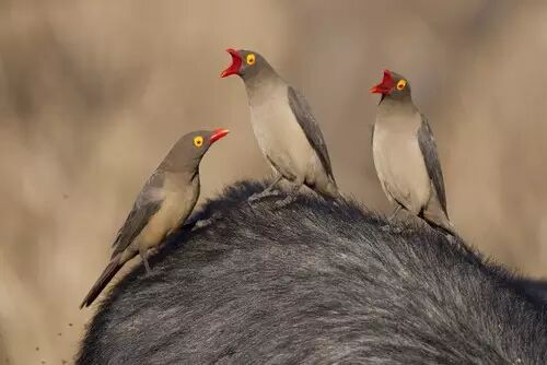 牛椋(liáng)鸟,雀形目椋鸟科,生活在非洲大陆上,很多时候是大型草食动物的好朋友,当然有的时候也不是(它们会从动物伤口啄食组织液,导致伤口愈合减慢)。