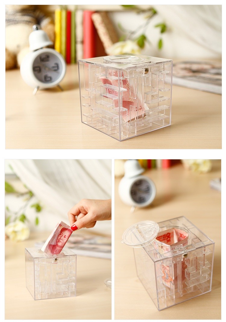 还有一种玩具叫蜂巢迷宫,实质上是个存钱罐,把钱塞进去之后,需要将里面的小球滚动到特定位置才能打开机关把钱拿出来(不知是谁想到的这种存钱方式……)。