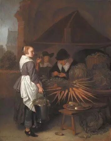 绘有橙色胡萝卜的那幅油画——Quiringh Gerritsz van Brekelenheim (b. Dutch, 1622 -1669) Vegetable Stall, 1656 | foodinthearts.blogspot.com