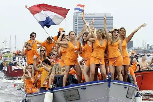 这就不得不提到荷兰人的“橙色情结”。16世纪奥兰治亲王(荷兰语Willem van Oranje,英语William of Orange,故被称作“橙色亲王”)率领荷兰人打败了西班牙统治者,建立了荷兰这个国家。从此橙色也成了荷兰人推崇的“皇家配色”。