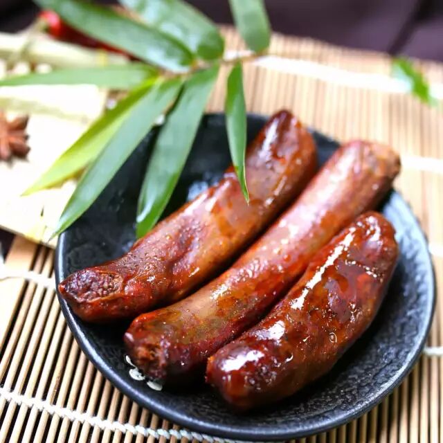 来自四川的纯手工传统腊味,用香肠的做法来制作腊排骨,将精选猪肋排切成5-7厘米的排骨段,裹上自贡井盐、汉源花椒、纯粮大曲等腌料,再用猪小肠肠衣灌制,四壁密封,柴火熏制。