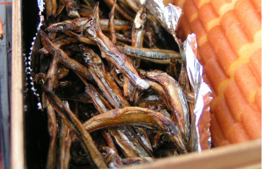 鲱鱼子里有无数的鱼卵,寓意五谷丰登、子孙繁荣。