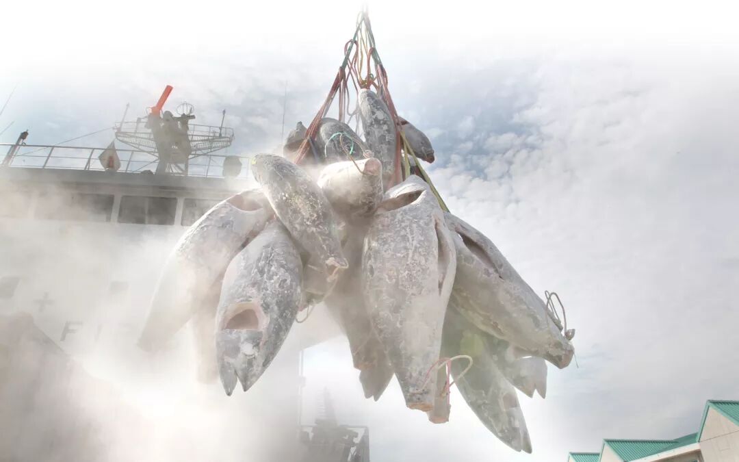 起重机吊起船上的冻金枪鱼|city.funabashi.lg.jp