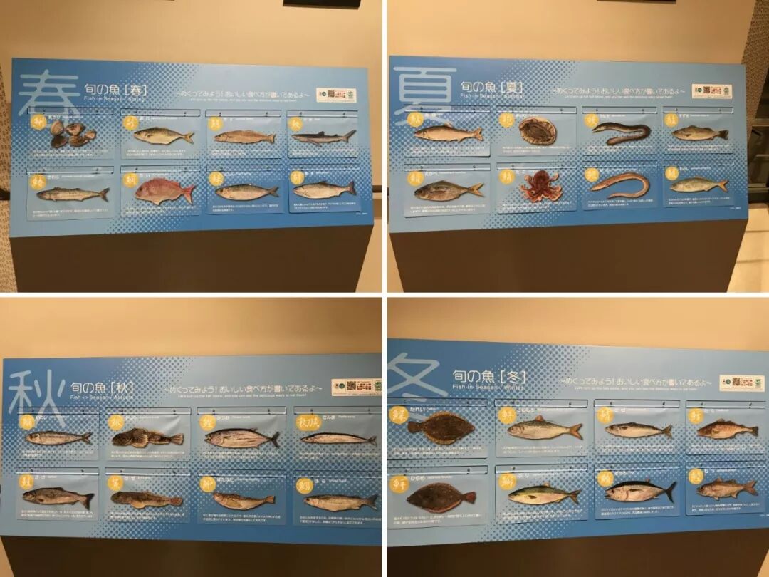 进去以后,会在通道两侧看到春夏秋冬四季鲜鱼的介绍。