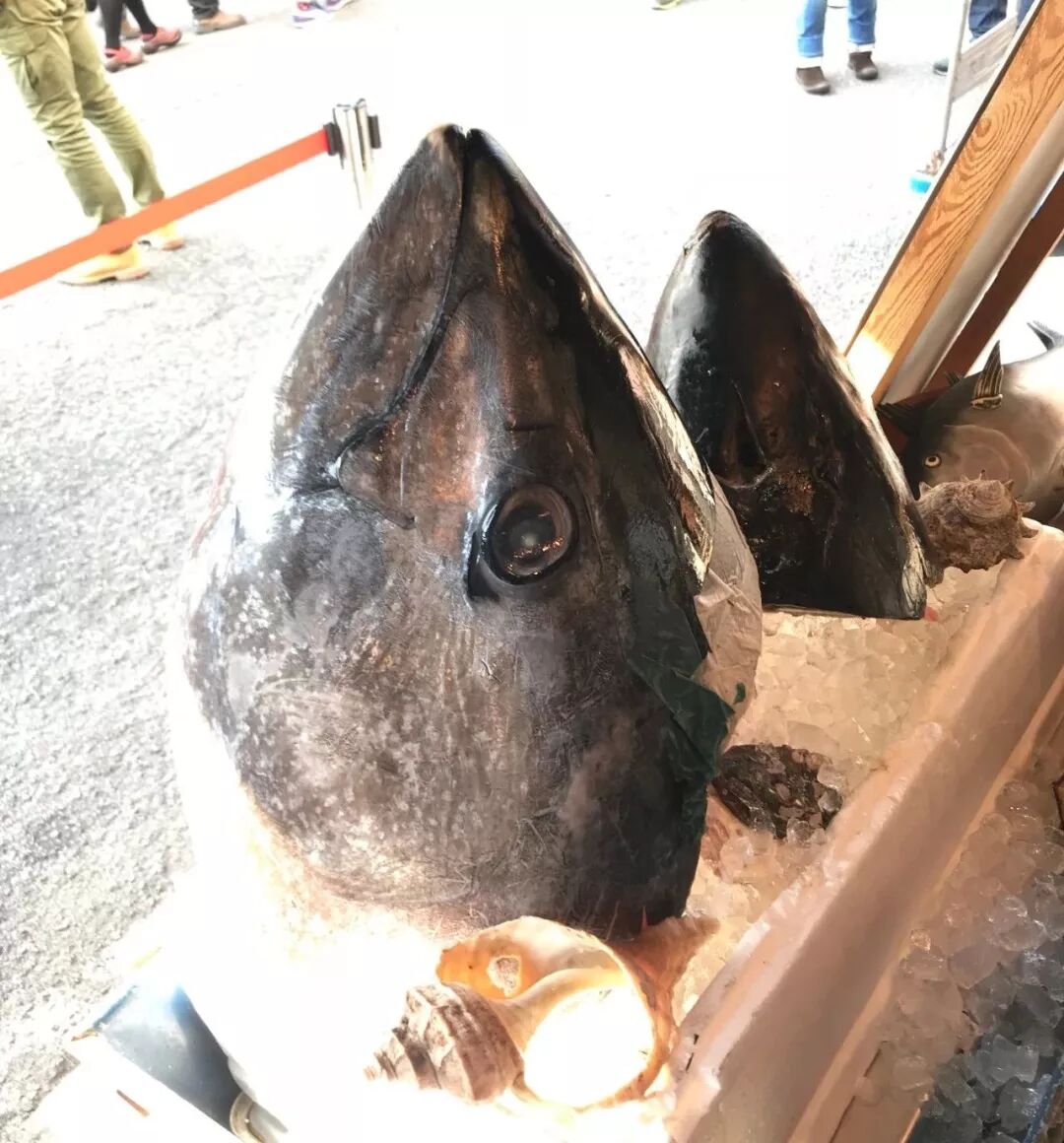这俩市场大概是筑地最值得逛的地方了。就拿金枪鱼来说吧,过去,游客看完高大上的金枪鱼拍卖,再想看金枪鱼,就只能排队去餐馆看碗里的了,中间的环节无从得见。
