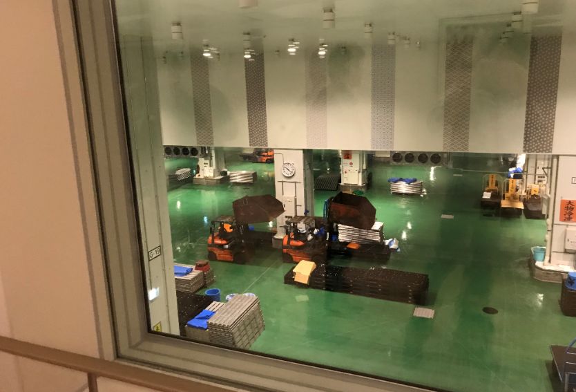 只不过搬到丰洲以后,看金枪鱼拍卖时,游客不能再进入现场,只能在参观通道隔着玻璃俯视一楼的拍卖场。