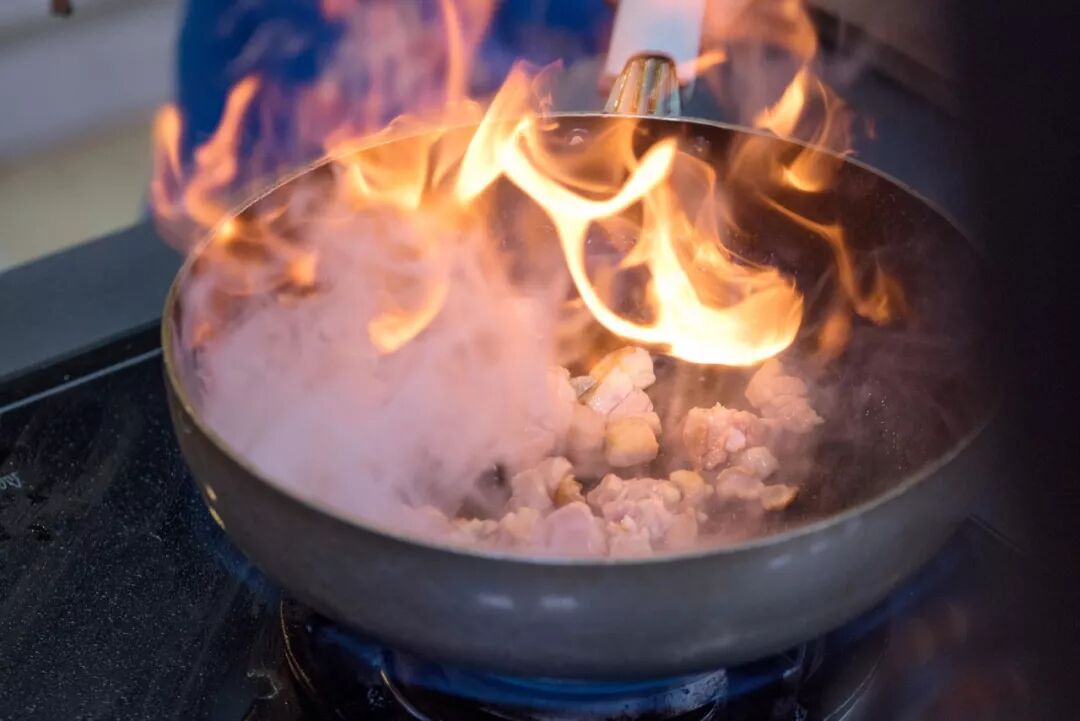 将切好的鸡丁回锅爆炒。