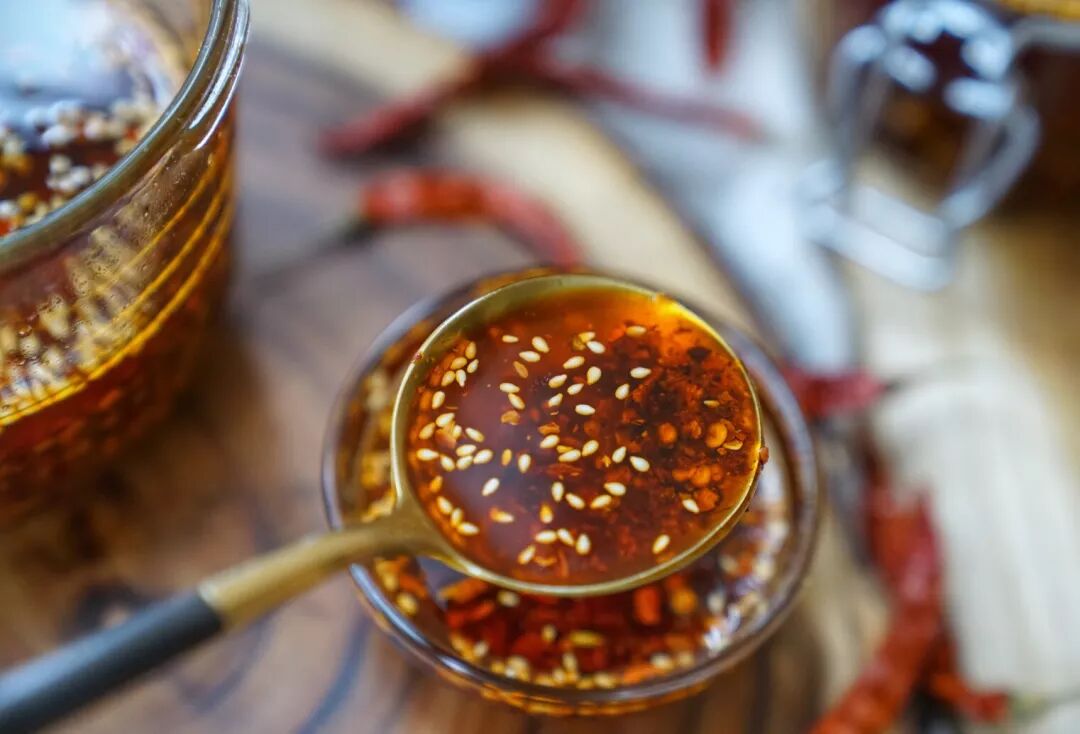 既然有“素蘸水”,当然与之相对应的就还有“油蘸水”。简单点说,就是蘸水里不再是干的辣椒面而是油辣椒。