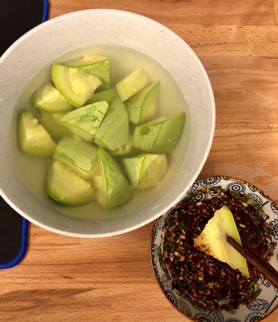 素瓜汤和素蘸水 拍摄/微博网友@Vien面面