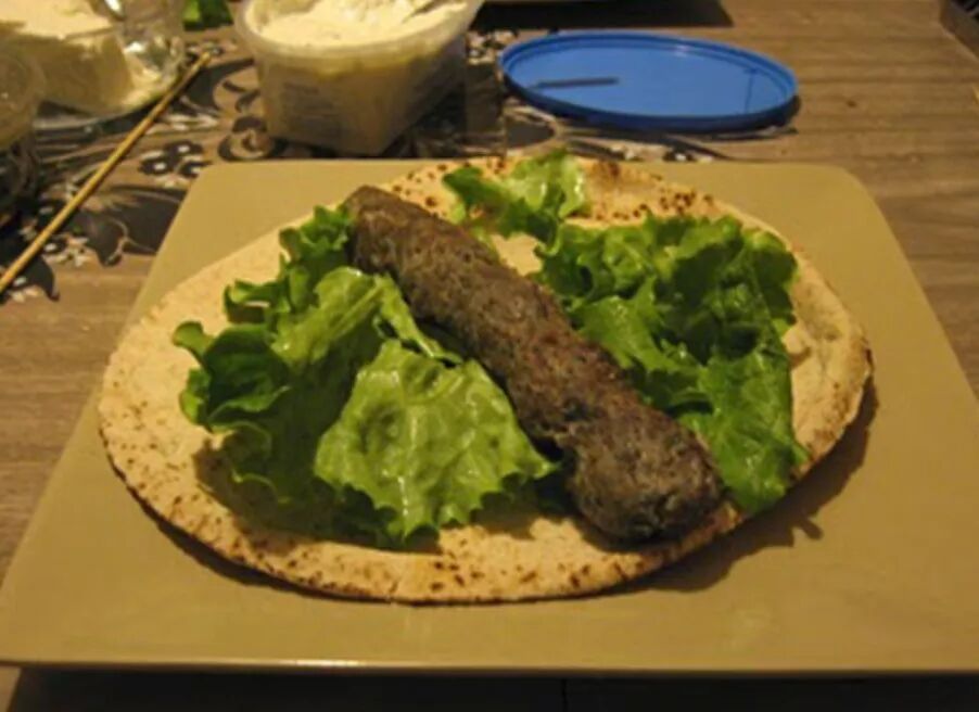 这款美食制作其实很简单,就是将羊肉剁碎后拿去烤,据说味道像手工香肠,配料加对自然是无比美味。这道菜也能给手残却爱做饭的黑暗料理爱好者提个醒:加酱油的时候一定要想想,生抽和老抽别乱加……