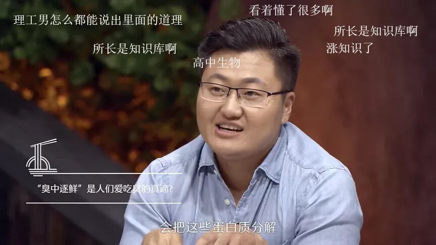 而在最新播出的第13期节目《臭味相投》里,咱们吃货研究所的所长玉子桑也受邀参与其中,和董克平老师、湉湉、梦瑶围坐一桌,探讨中国人的“臭味偏好”。