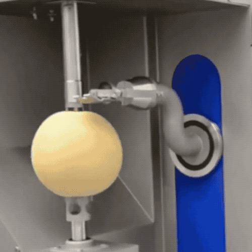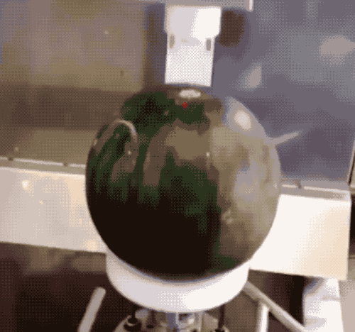 那皮不那么好分开,又不容易被化学处理的西瓜、哈密瓜、菠萝、苹果、橙子和芒果该怎么办呢?就需要用到简单粗暴的工业削皮机。