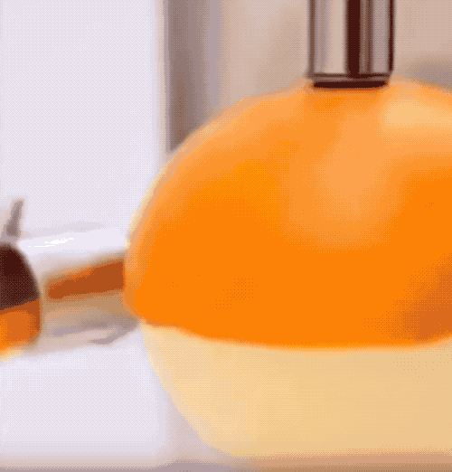 削皮的刀片上往往会有装一个弹簧,保证刀片能贴合在果皮表面,又有一定的压力不至于滑脱,上图有点厚度的西瓜皮可以这么切削,下图小很多的橙子也可以这么操作。削完皮之后两头一切,就是完完全全的果肉啦。