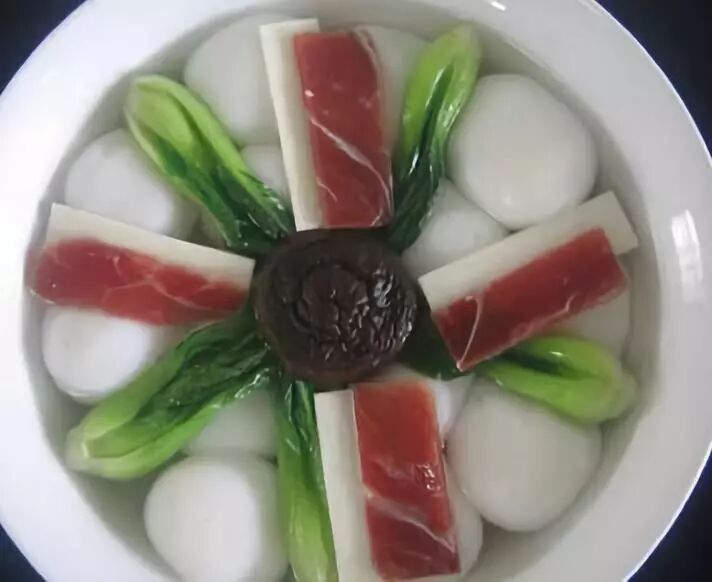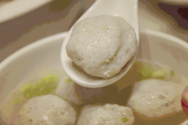 浙江人则把鱼丸称为“鱼圆”,是充满文人情怀的饮食,肉要用细腻的鲢鱼,不能加蛋清芡粉,一个个松散细嫩的大丸子,浮在煮鱼圆的清汤里,要小心伺候。用火腿片、香菇、嫩豌豆苗搭配,是为“清汤鱼圆”。