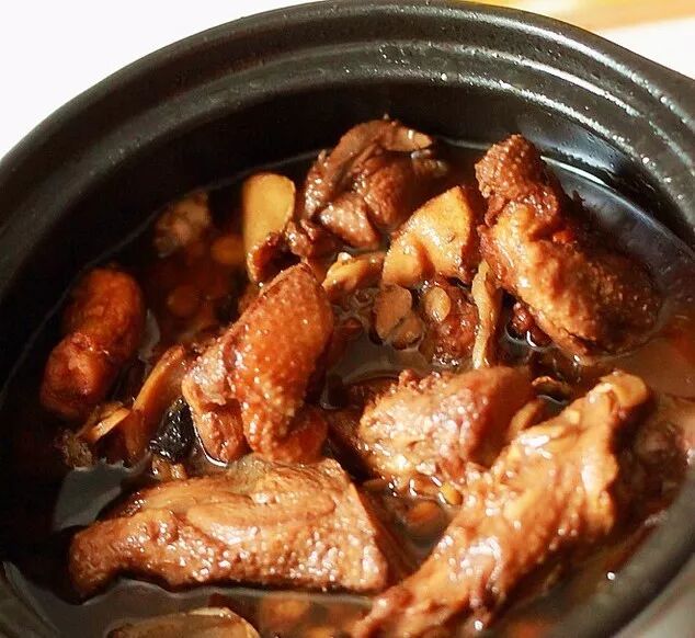姜母鸭起源于福建泉州地区,原料选用正当季的鲜嫩番鸭,加芝麻油、姜母(即老姜,客家人的叫法)煸香后,加入米酒、高汤、香料等小火慢煲。煲好的番鸭色泽红亮,姜母的香气与麻油香、米酒香混在一起,鸭皮微微焦香,鸭肉酥而不烂,再加上似有若无的药材香,一锅热气腾腾的姜母鸭便是闽南人最有仪式感的“冬季进补之选”。