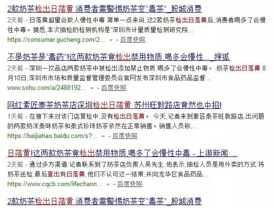 最近,深圳食品药品监督管理部门在某网红店检测出两款奶茶(“奶沫泰味奶茶”和“泰式珍珠奶茶” )添加了日落黄。大量媒体报道时称,奶茶添加有害色素,食用会导致慢性中毒,这让喜欢奶茶的人们忧心忡忡。