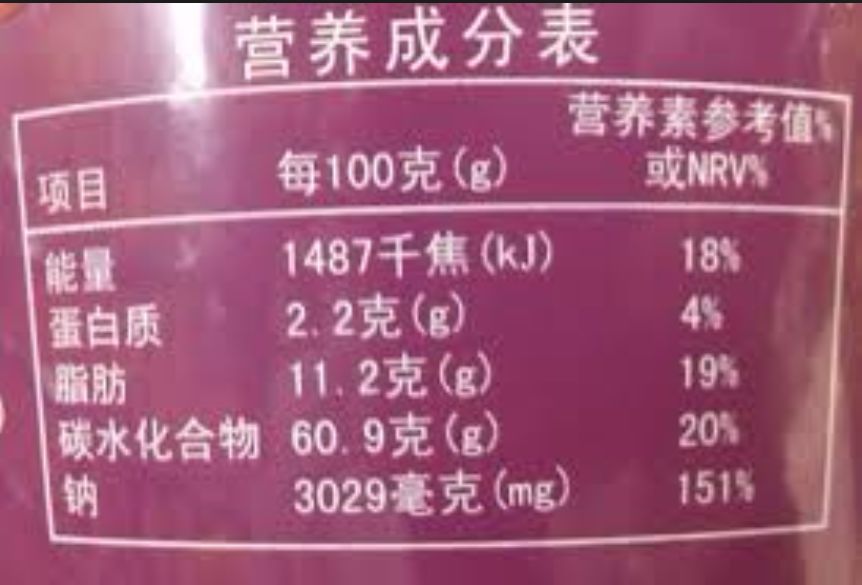 这张照片里,在营养成分表的“营养素参考值%或NRV%”一栏里,钠的对应栏赫然写着151%。这个数是合理的吗?它意味着什么?营养成分表都意味着什么?今天所长带你用3分钟学会看营养成分表。