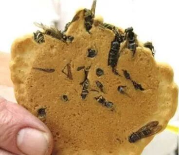 如果不看里面密密麻麻的黄蜂尸体,这饼干其实就是普普通通的饼干,看外观也挺像普通的曲奇饼,只不过比起巧克力豆,里面可是货真价实的黄蜂,而且平均一块饼干里就有5~10只,看来需要躲开这份特色小吃的,除了虫恐,还有密恐……这种饼干的做法也蛮清奇:要先将黄蜂在清水中煮沸,再和进面团里。据说黄蜂饼干吃起来倒是和普通的饼干没啥两样,甜甜的。但是黄蜂的口感嘛……只能说,真的是很妙不可言了。