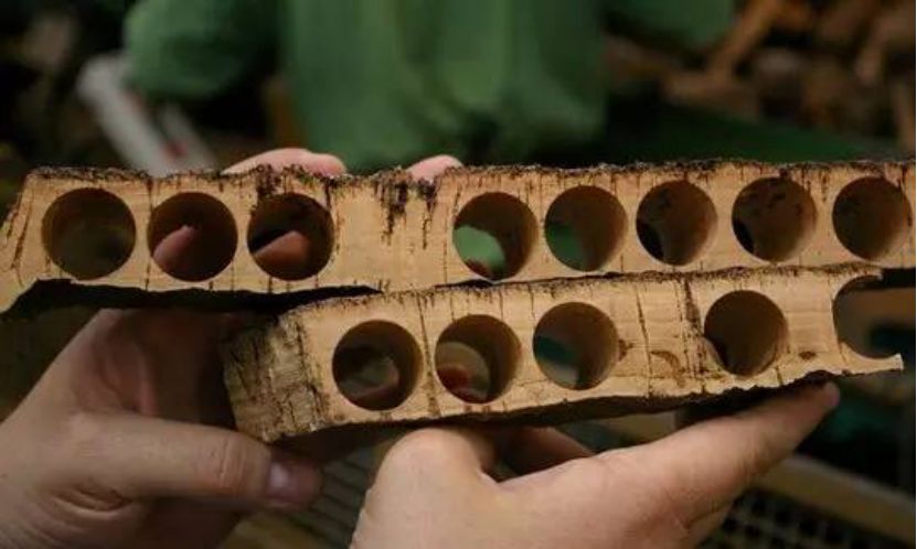 虽然栓木层被剥了之后,还会再生新皮,但理论上一棵栓皮栎的树皮采剥极限为16次,所以顶级天然软木塞产量稀少,价格昂贵。迫于经济上的压力,一些小酒厂开始考虑软木塞的其他制作途径。比如制作天然瓶塞剩余的树皮边角料。一批新的软木塞也应运而生。