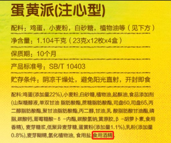 蛋黄派的配料里有食用酒精