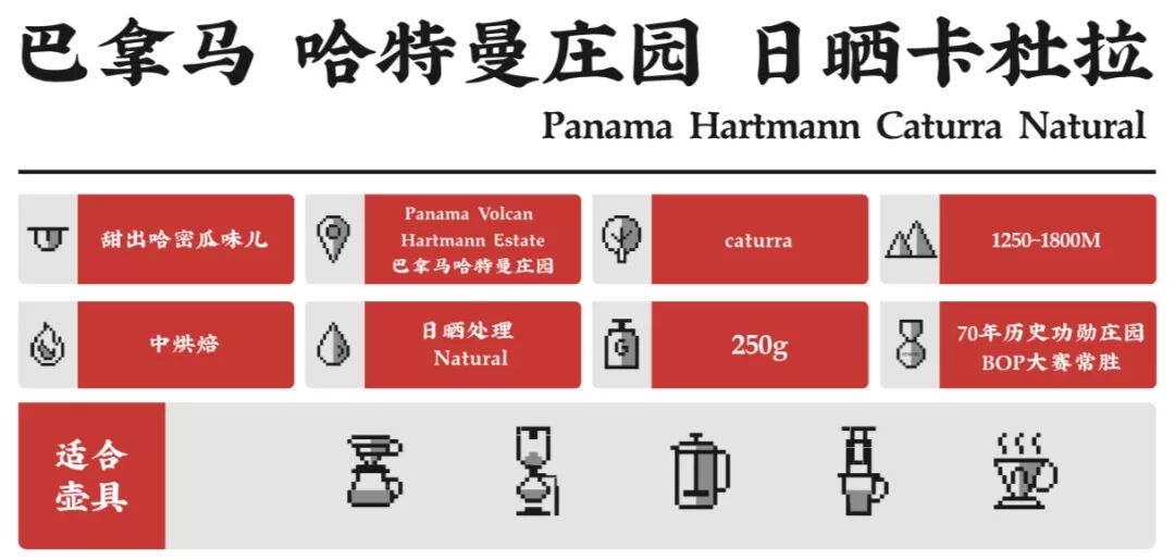这款巴拿马著名的哈特曼庄园,不只出产昂贵的瑰夏,这次带来了平价又特殊的日晒卡杜拉,别出心裁地酝酿出瓜中甜心——哈密瓜的风味。